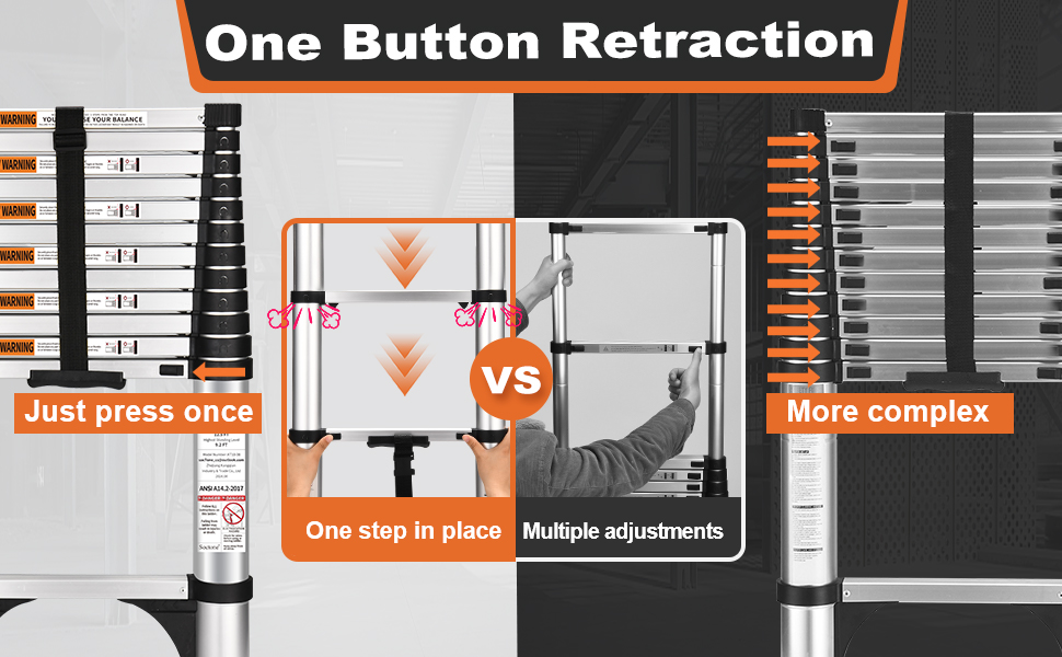 Stable telescoping ladder for easy access to high places